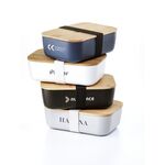 Generously sized lunch box made from PP plastic. The lid is made from natural bamboo. An elastic strap ensures that the lid stays in place on the go. NOTE: Due to the natural grains and contours of bamboo, we cannot guarantee consistency in depth/colour of the engraving.